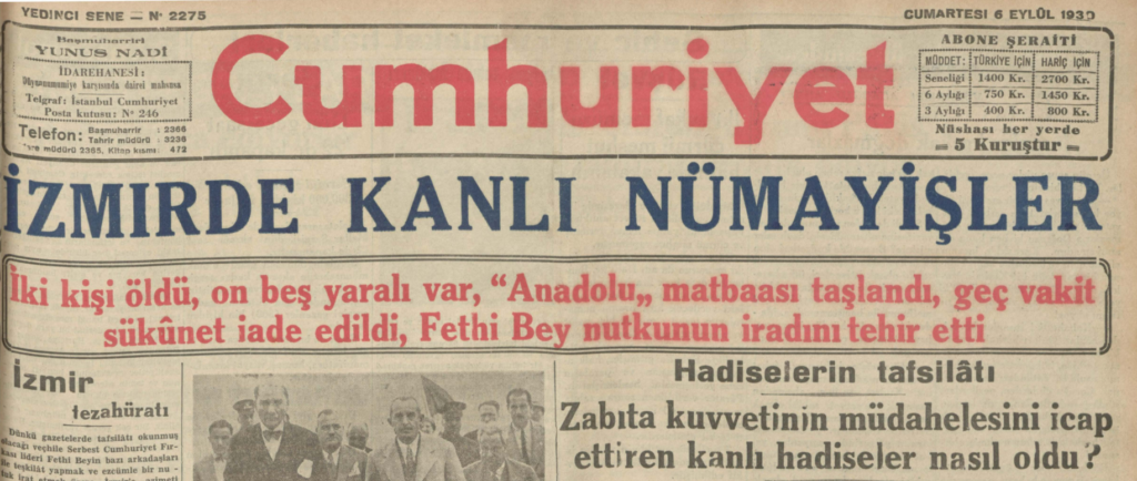. Cumhuriyet gazetesi, 6-7 Eylül 1930, s.1