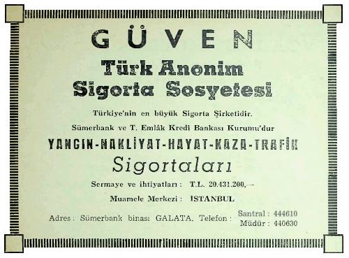. "Güven Türk Anonim Sigorta Şirketi" başlıklı belge, https://istanbulansiklopedisi.org/handle/rek/760
