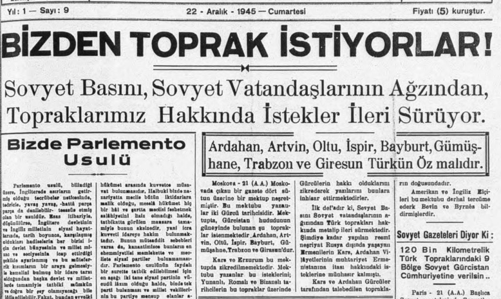 Savaştan galip çıkan Rusya’da bir kısım Gürcü, hızını alamayarak Türkiye’den toprak etmeye başladı. Gürcistan’ın güneyinde kalan Artvin, Gümüşhane, Trabzon, Giresun ve birçok bölgenin Türkiye’den alınarak Gürcistan’a, haliyle Rusya’ya katılması gerektiğini savundular. Rusya’nın bu saldırgan tutumu, “denize düşen yılana sarılır” misali, Türkiye’nin Amerika’ya daha da fazla yanaşmasına yolaçtı.