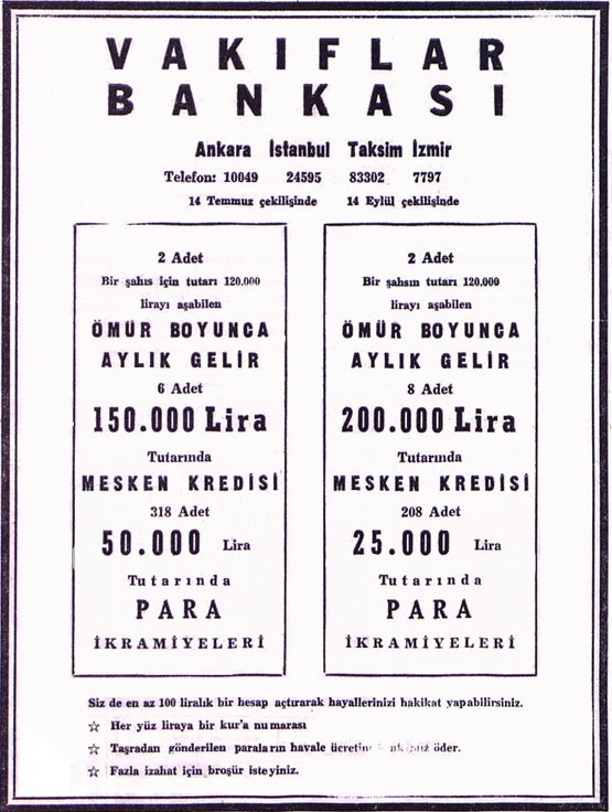 Vakıflar Bankası, kaynaklarını ekonomik kalkınmanın ihtiyaçları doğrultusunda en iyi biçimde değerlendirmek amacıyla kuruldu. Uzun yıllar bu işlevini sürdürdü.