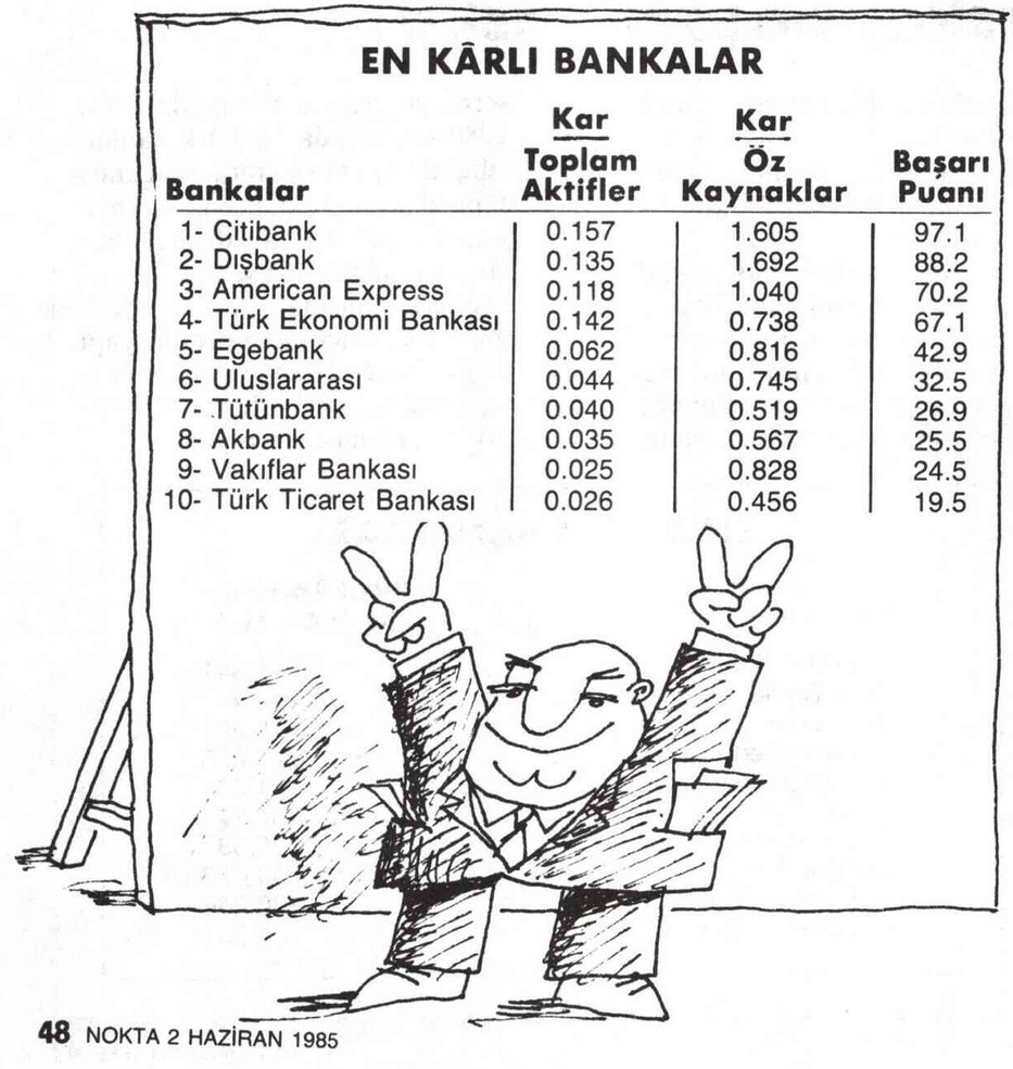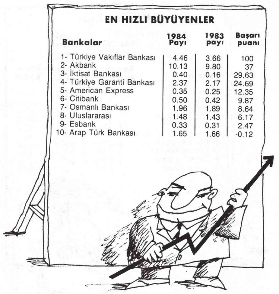Nokta dergisinin 1985’te yaptığı araştırmaya göre, Vakıfbank 1983-84 rakamlarına göre en hızlı büyüyen bankaydı. Karlılık oranına bakıldığında ise 9.sırada yer alıyordu. Vakıfbank, Roketsan Roket Sanayii, Bankalararası Kart Merkezi, Türkiye Sınai Kalkınma Bankası (TSKB), JCR Avrasya Derecelendirme A.Ş. gibi çok önemli kurumların hissedarı.