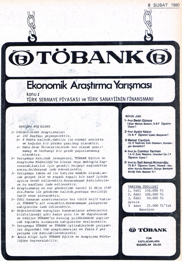 Bankanın 1970-1980 arasında müzik yarışması, ekonomik araştırma yarışması gibi yarışmalar düzenlemiş.