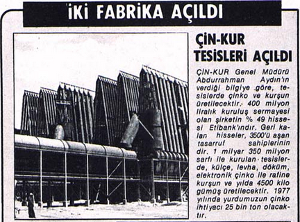 Çinko üreten tek işletme olan Çinkur, Türkiye’nin en büyük sanayi kuruluşlarından biri haline geldi.